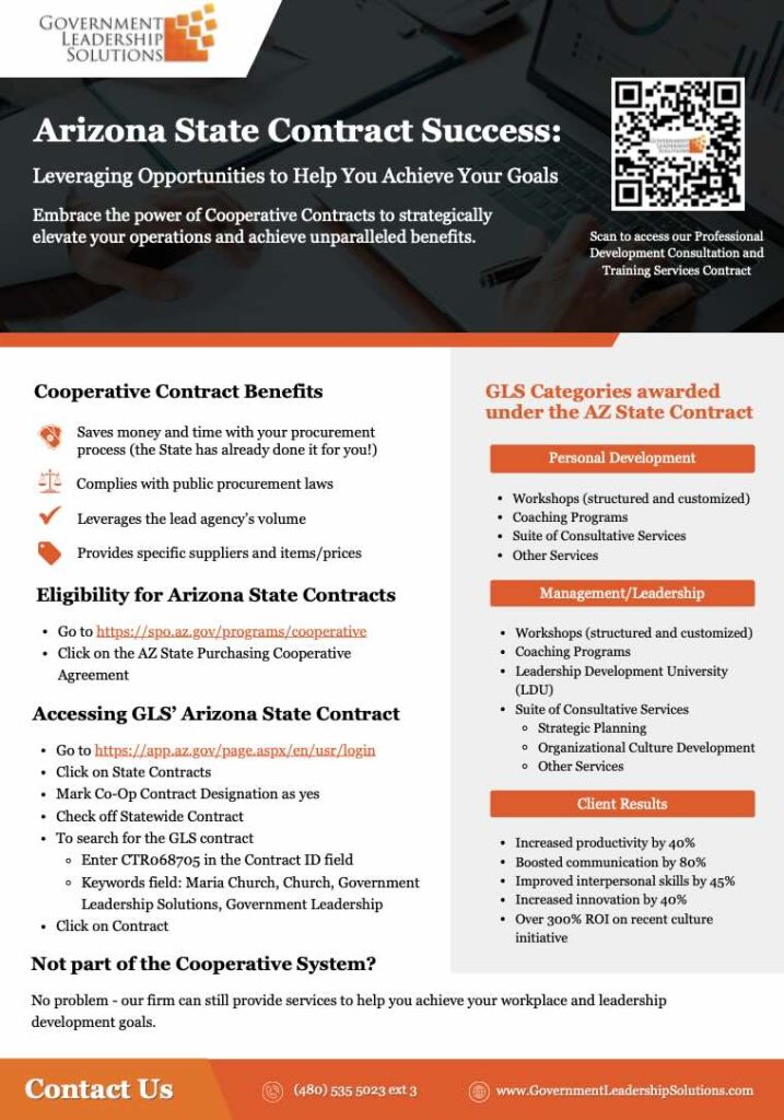 “We’re incredibly honored to receive the State of Arizona cooperative contract,” said Dr. Maria Church, CEO and founder of GLS. “For over 15 years, we’ve partnered with local governments across the state, and this contract allows us to expand our impact. It reaffirms our dedication to delivering exceptional leadership, organizational development, executive coaching, and training services to public organizations at the state level.”